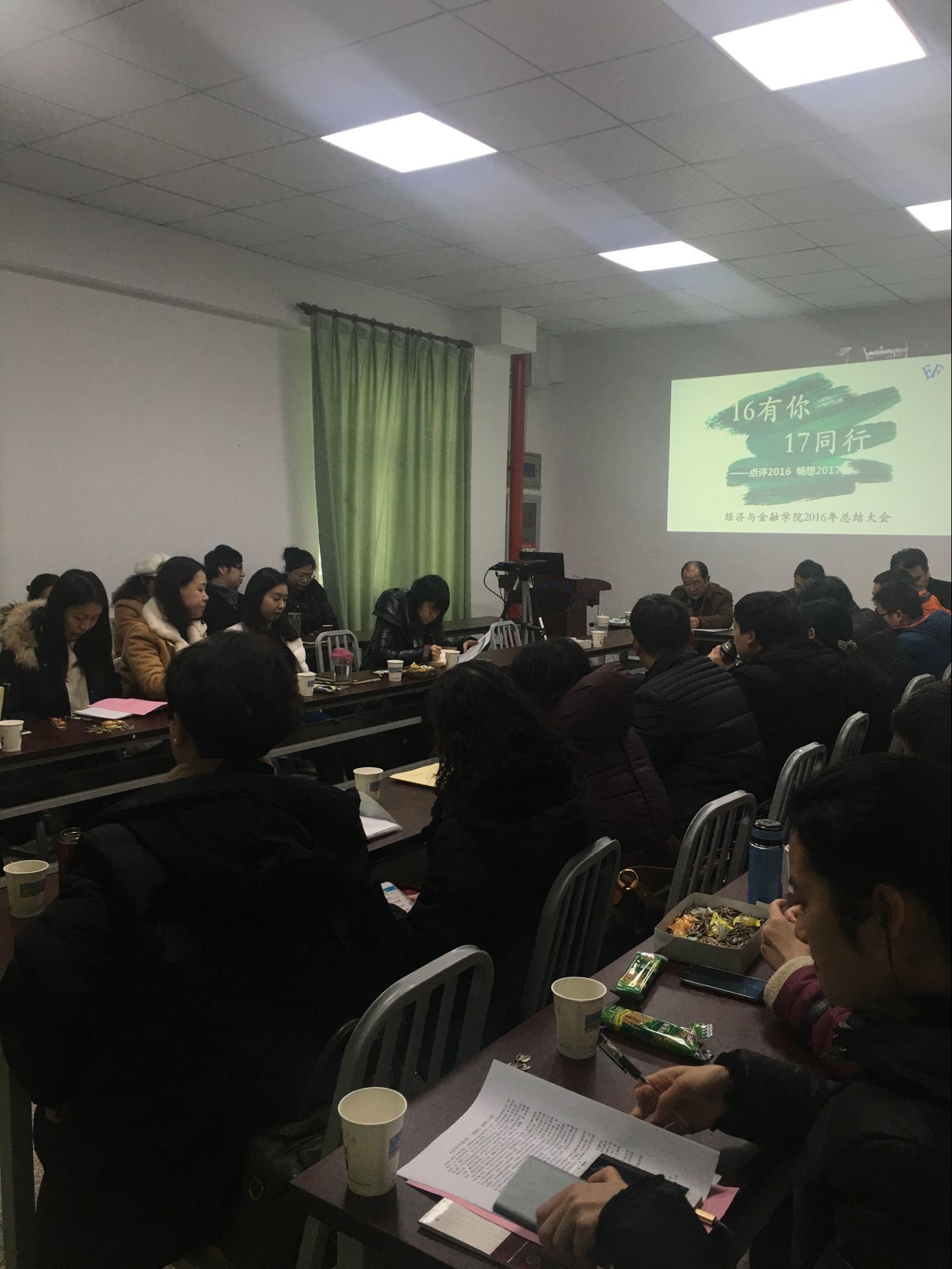 1月18日下午,经济与金融学院2016年工作总结大会在学院会议室召开。学院领导班子及全体教职工参加会议。